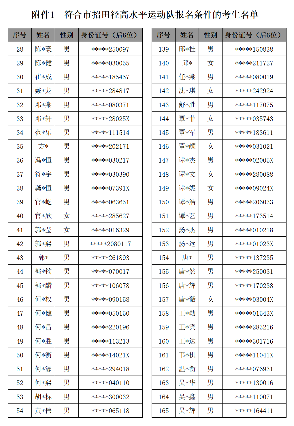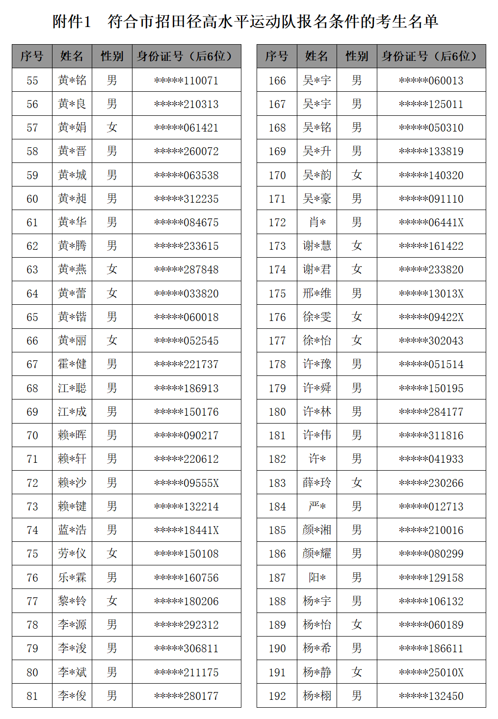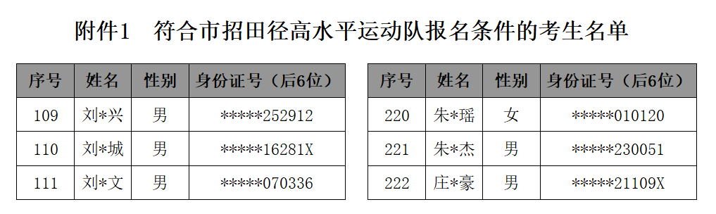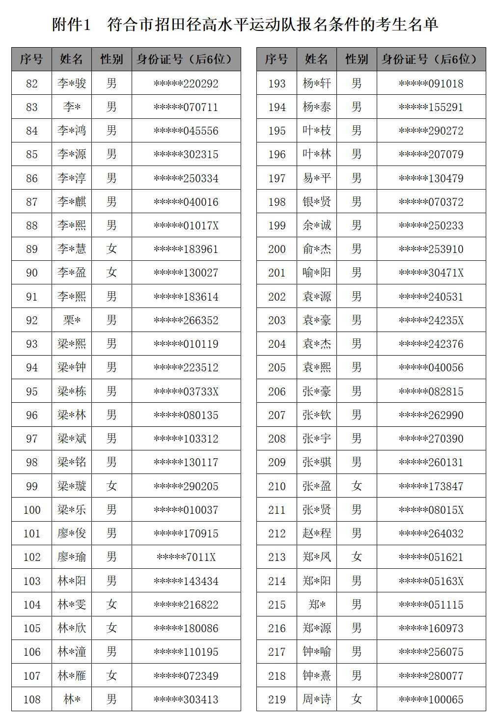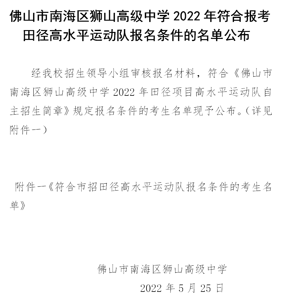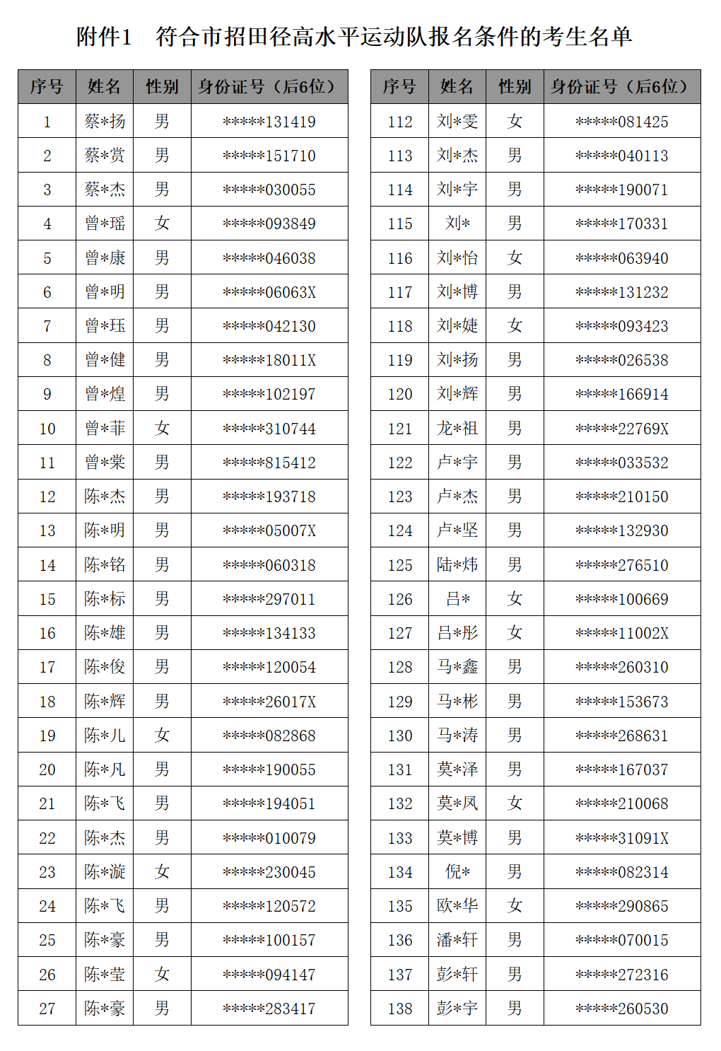 2022年符合报考田径高水平运动队报名条件的名单公布